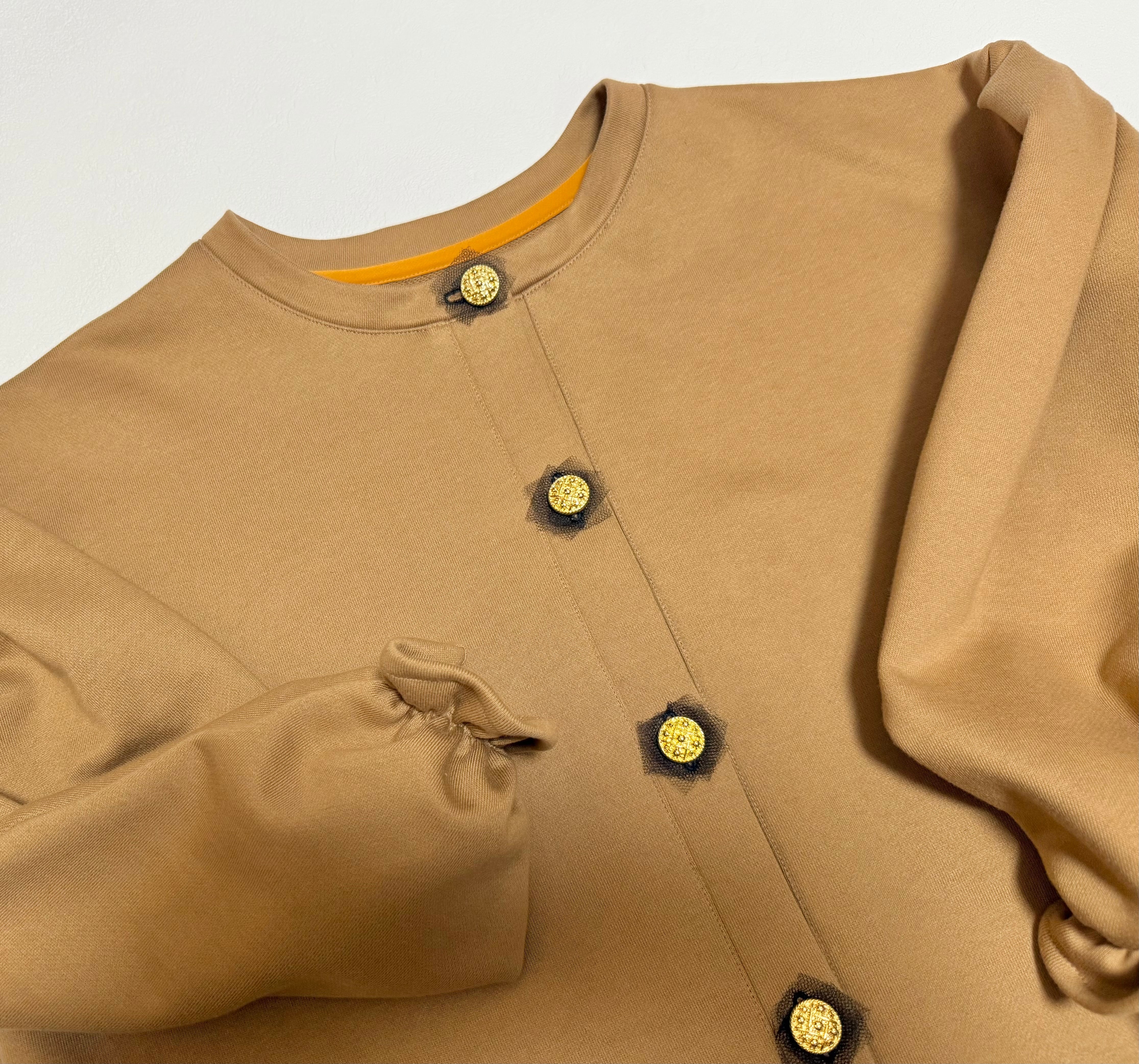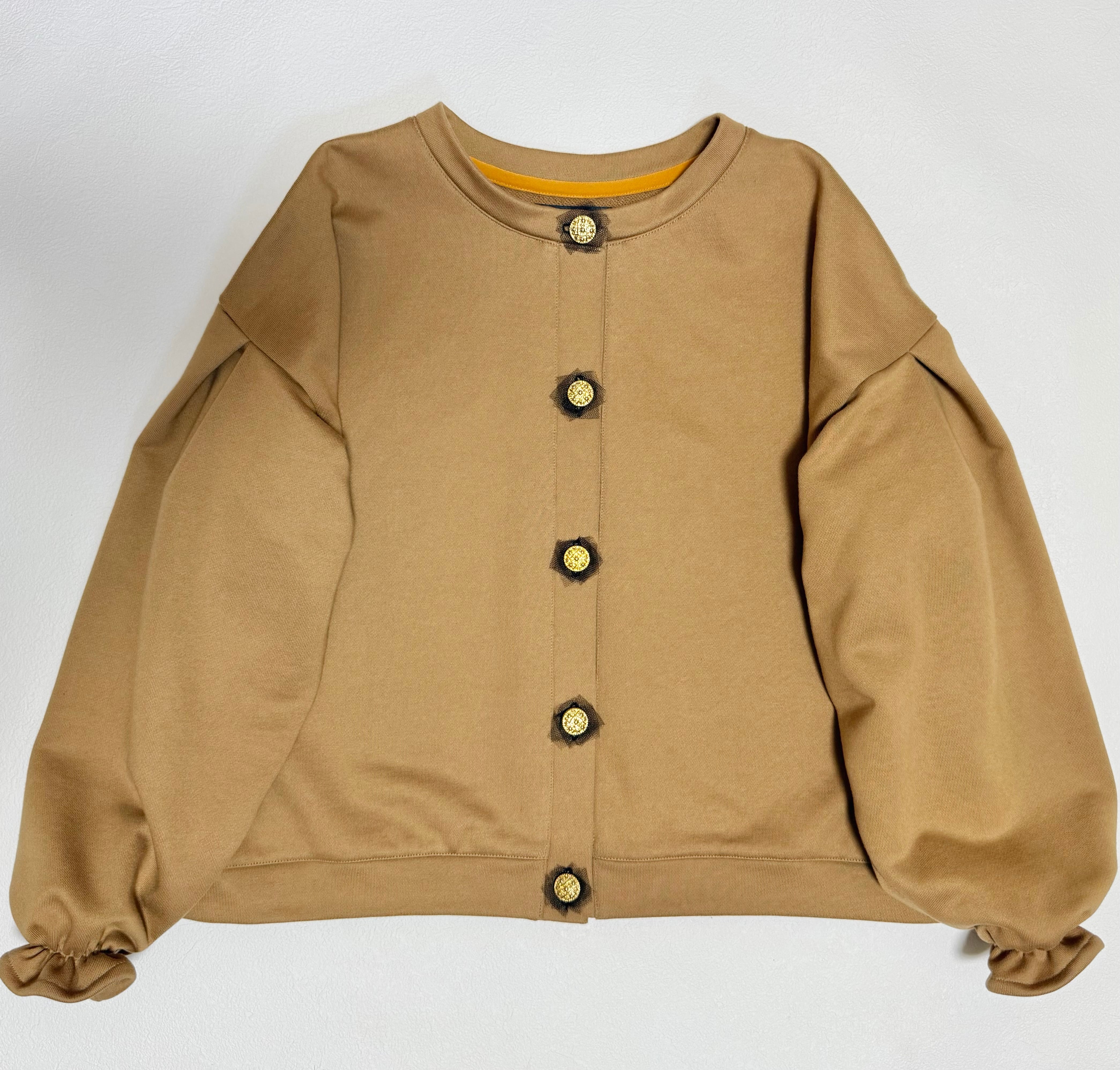 季節の変わり目の羽織ものとしてはもちろん、ボタンを全て留めてトップス風に着ても◎。