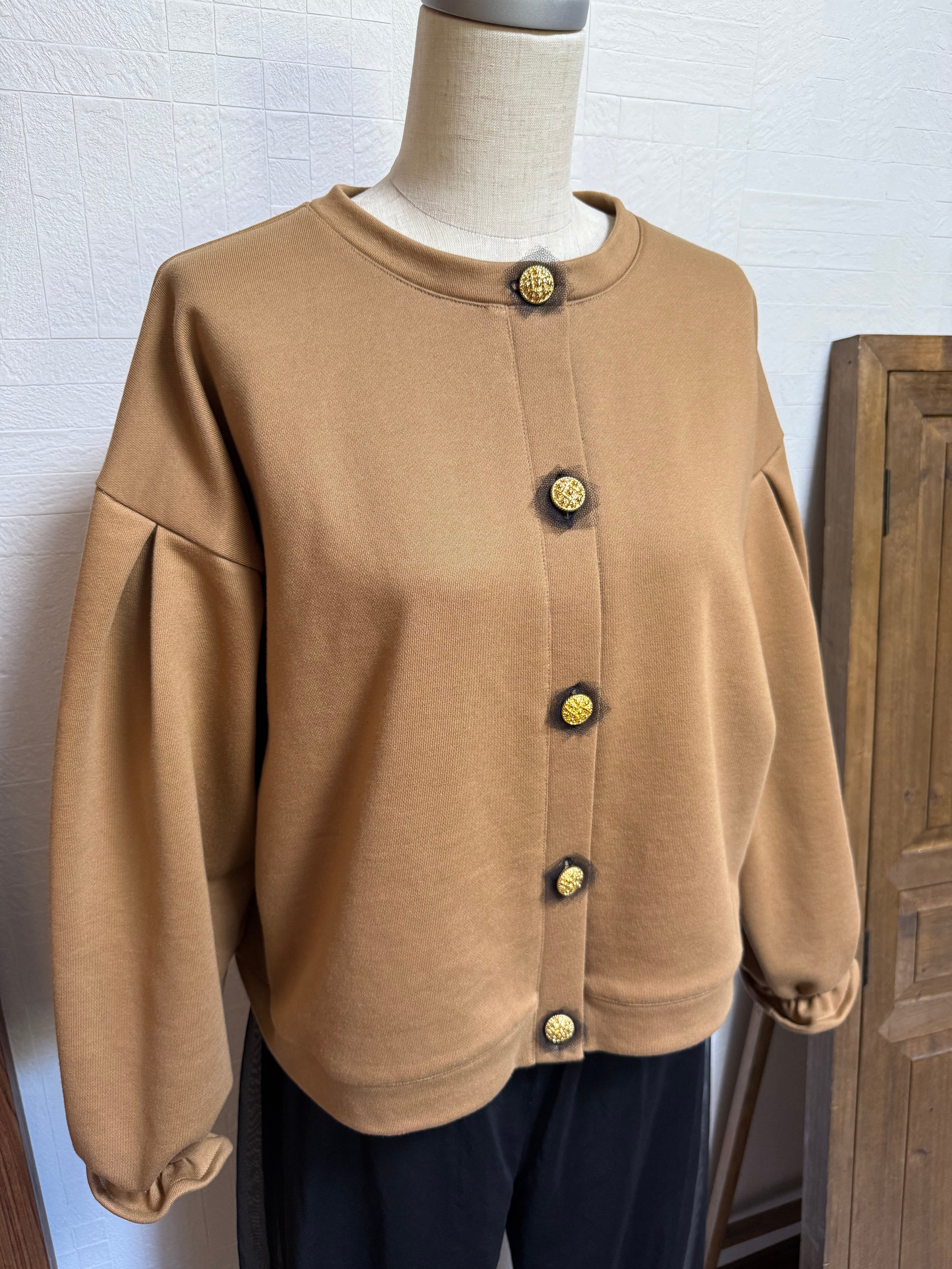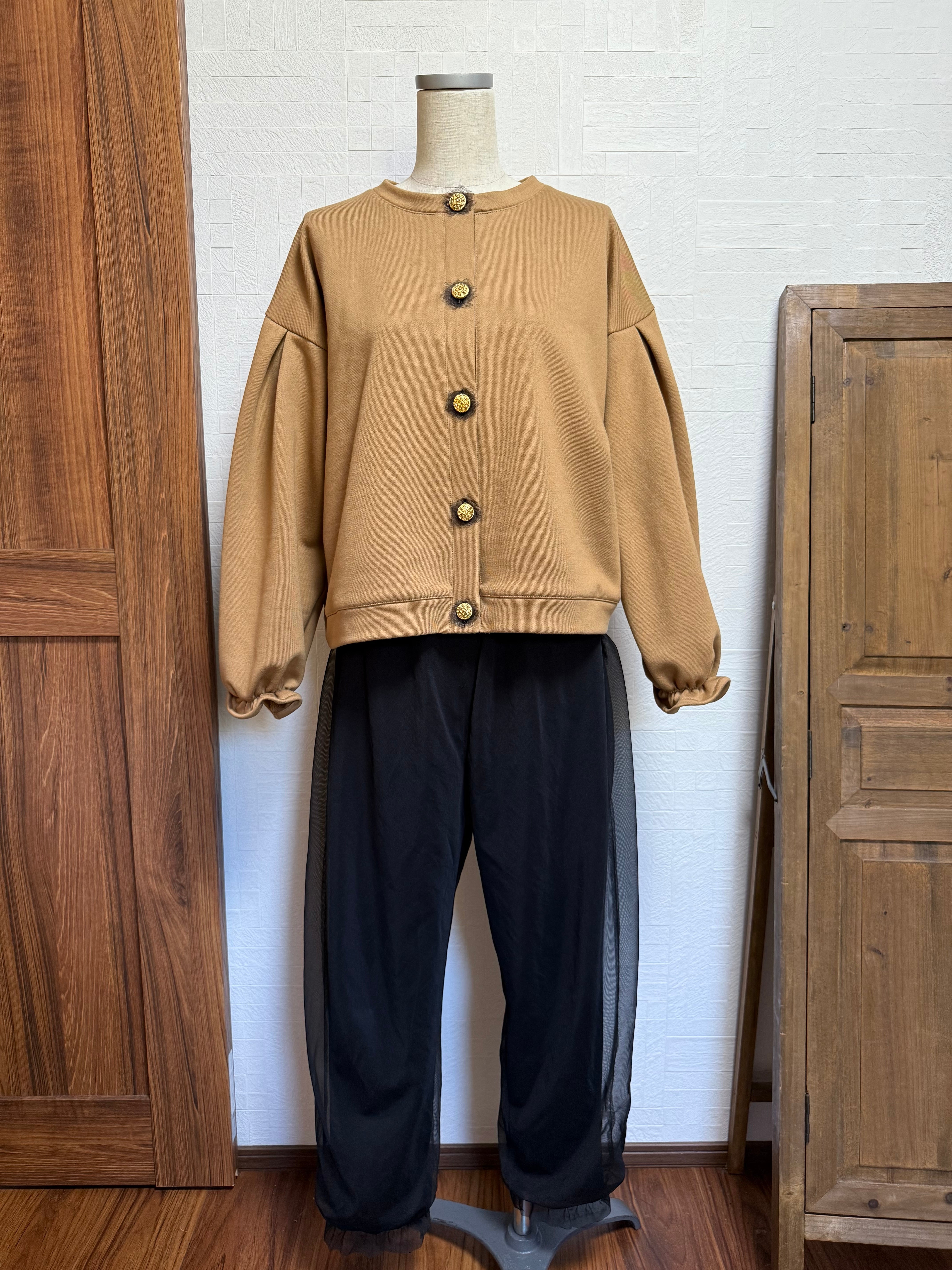 ふんわり袖とゆったりシルエットで、ラフに羽織っても女性らしい印象に。