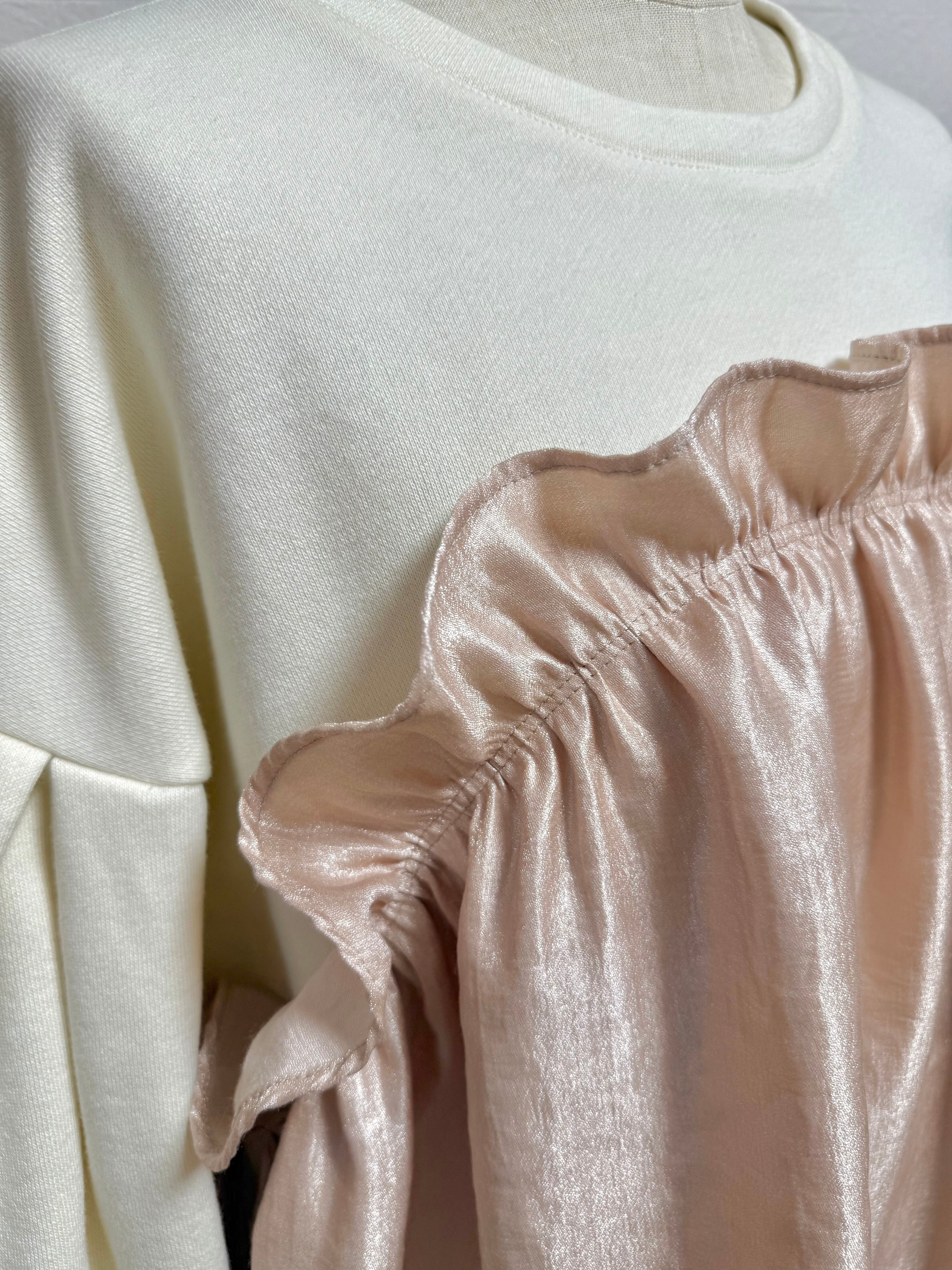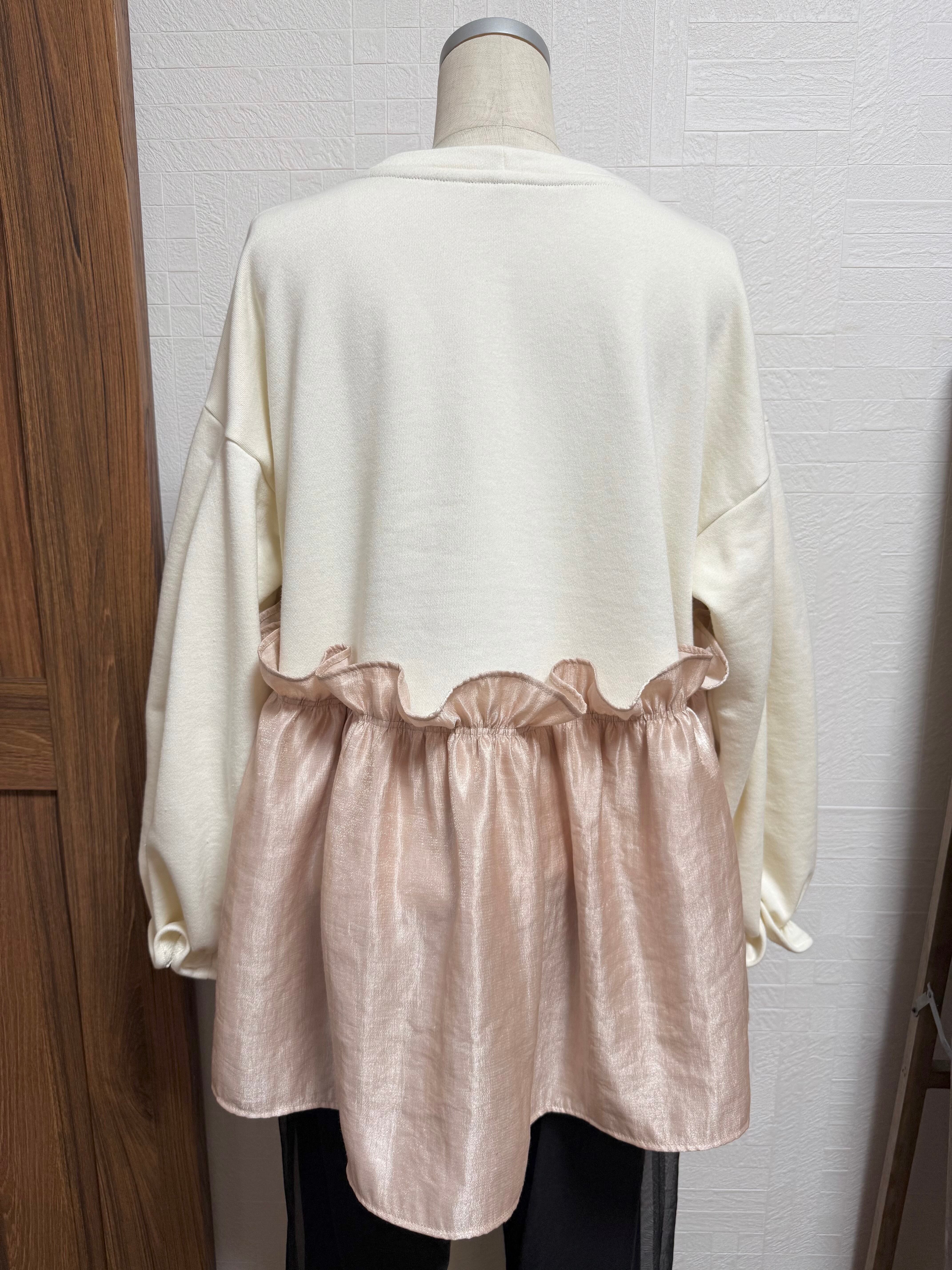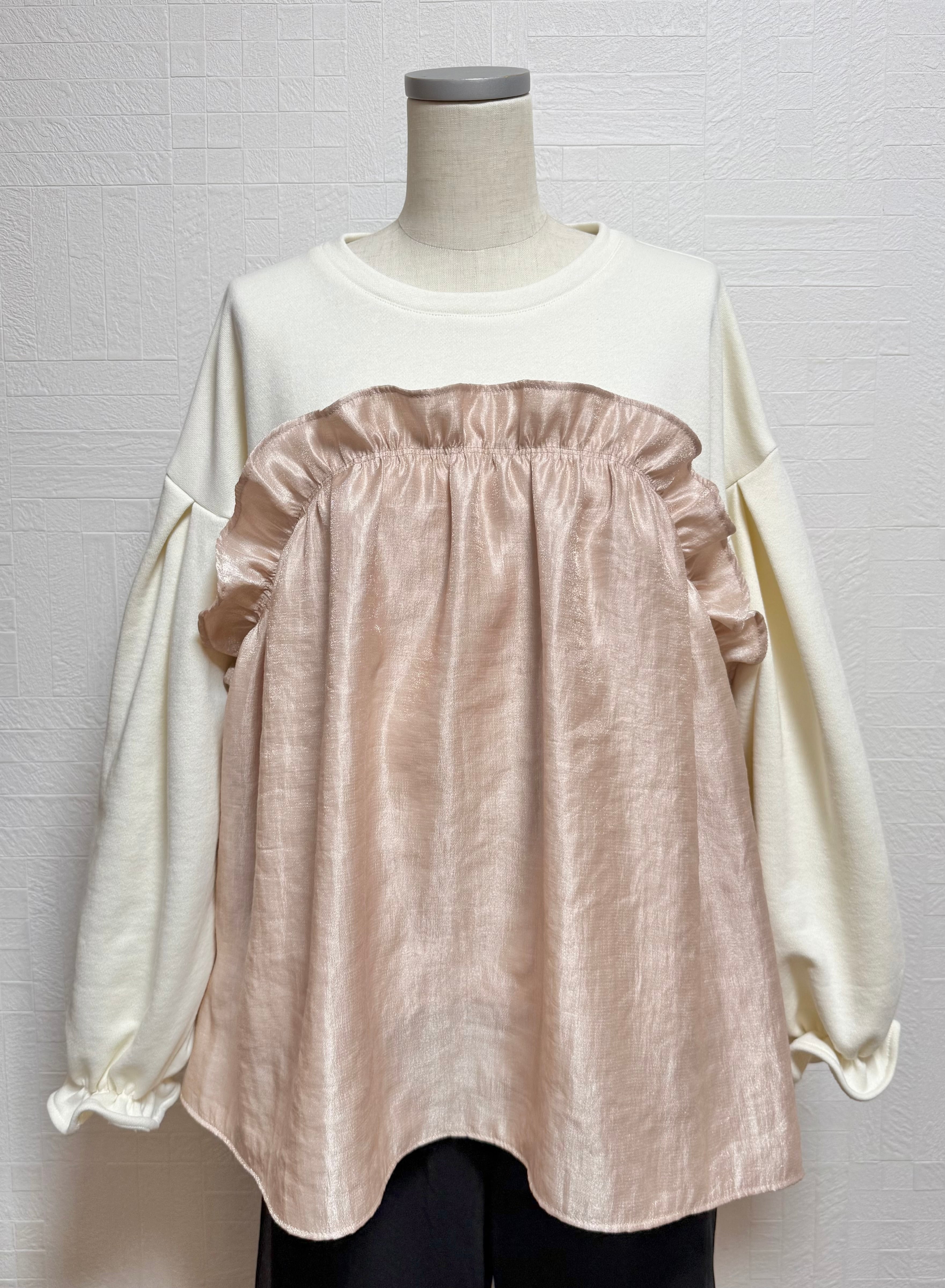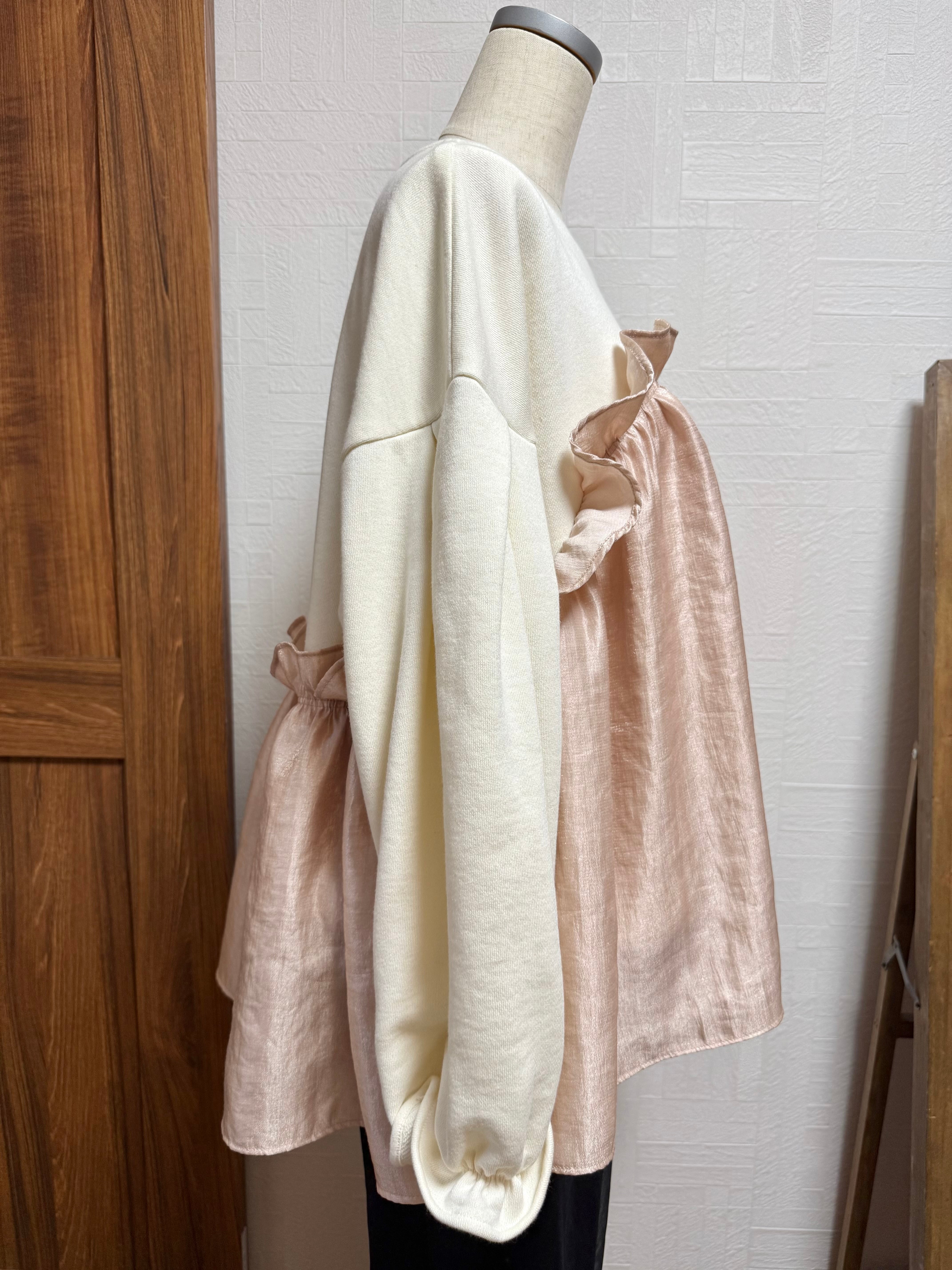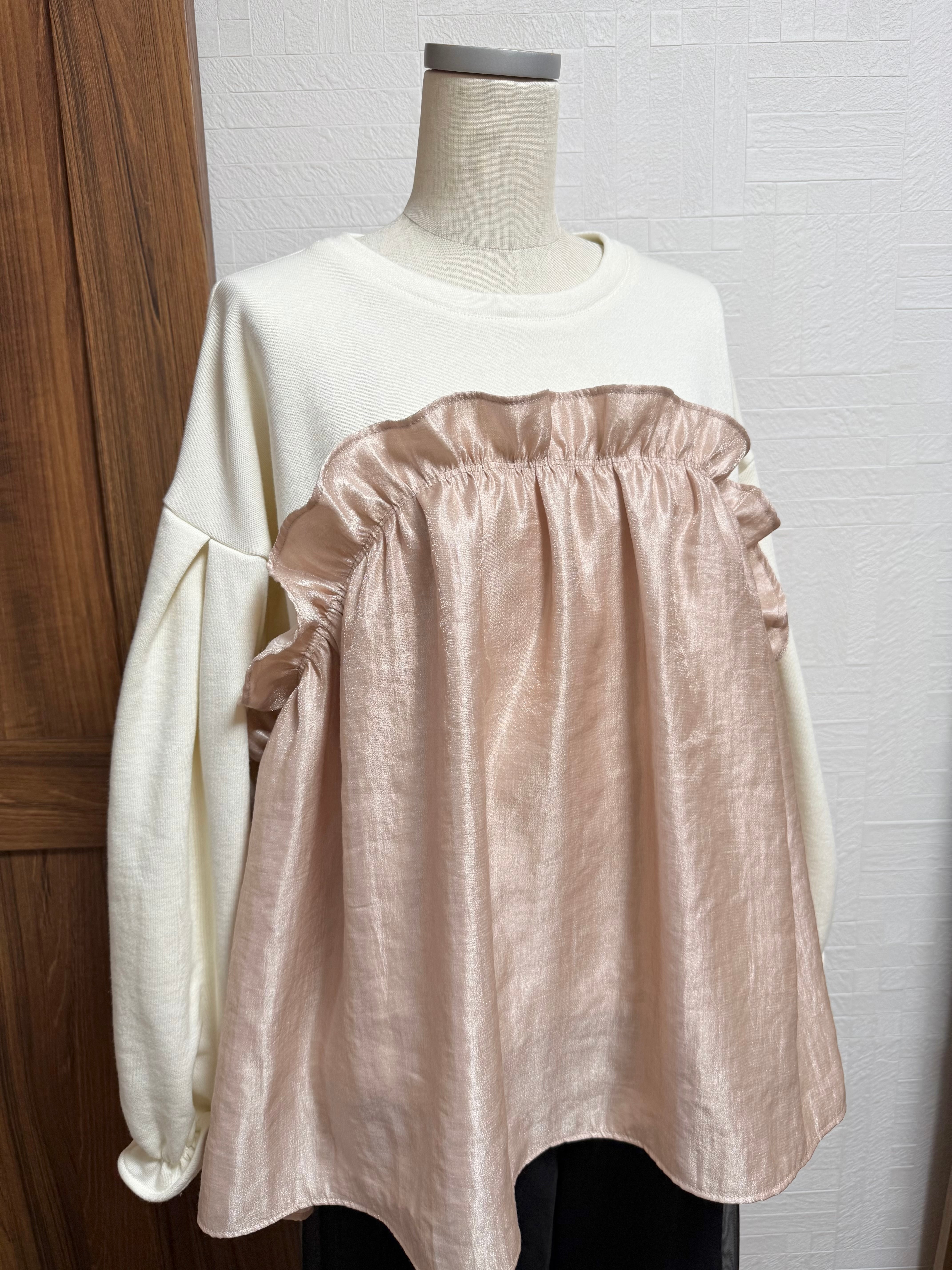 ギャザーを寄せた光沢素材を重ねたデザインです♪