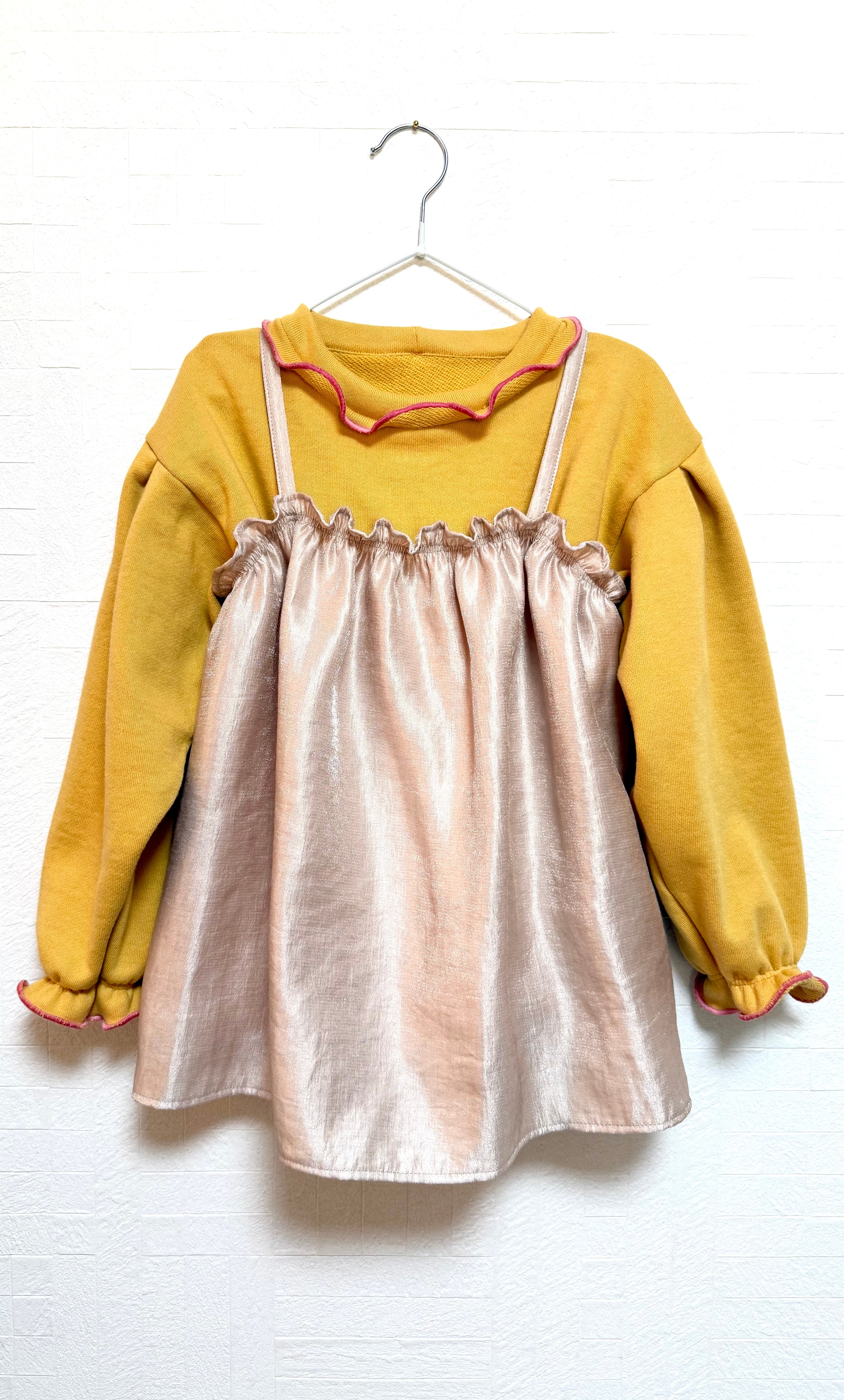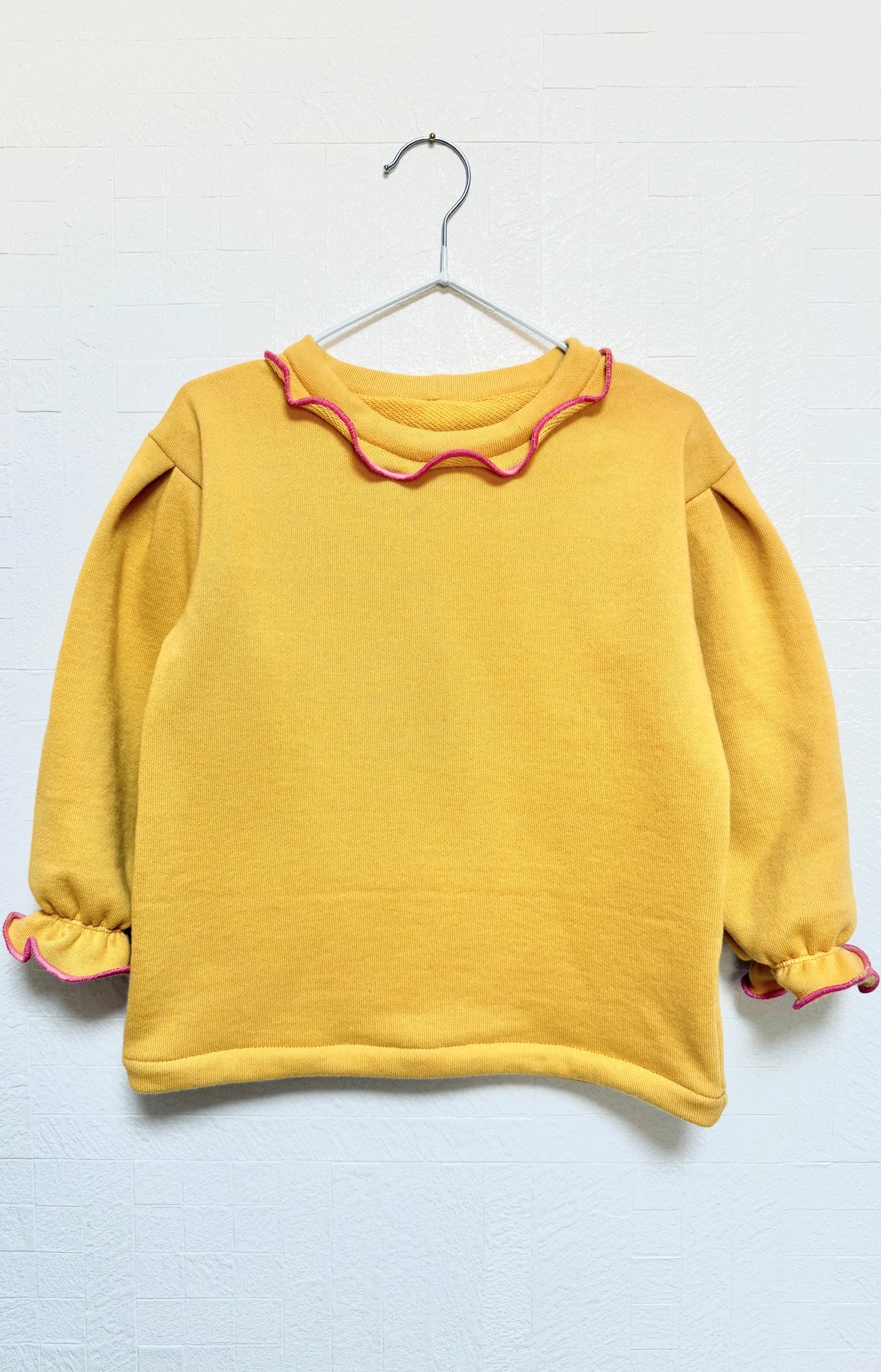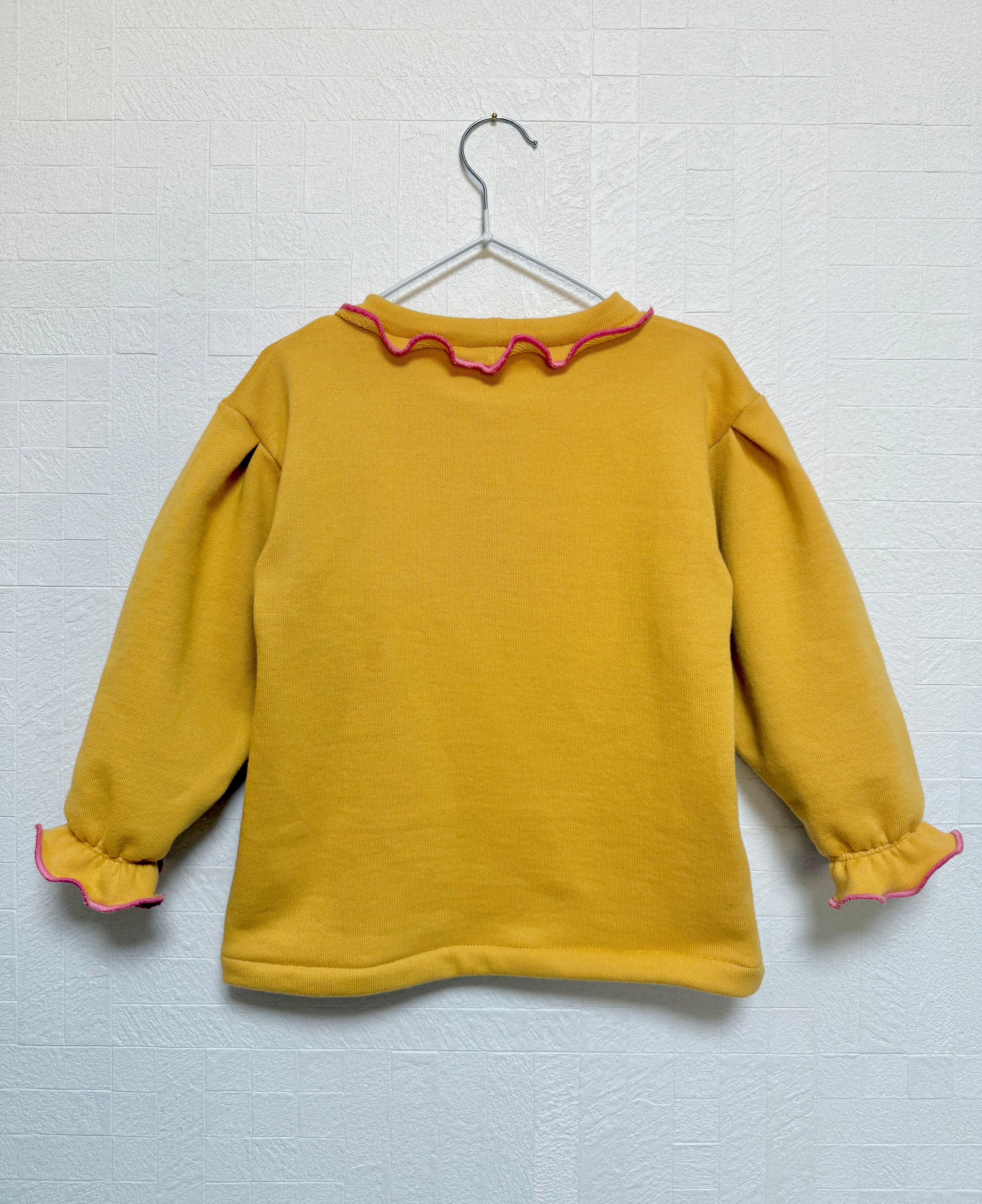 首元と袖口のメローがポイントの、動きやすくて可愛いキッズトップス。